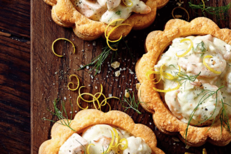 Γιορτινές Συνταγές Κυρίως-Πιάτο Σνακ-Ορεκτικά Φούρνος Χτένια τυλιγμένα με κανταΐφι μαριναρισμένα με λικέρ πορτοκάλι