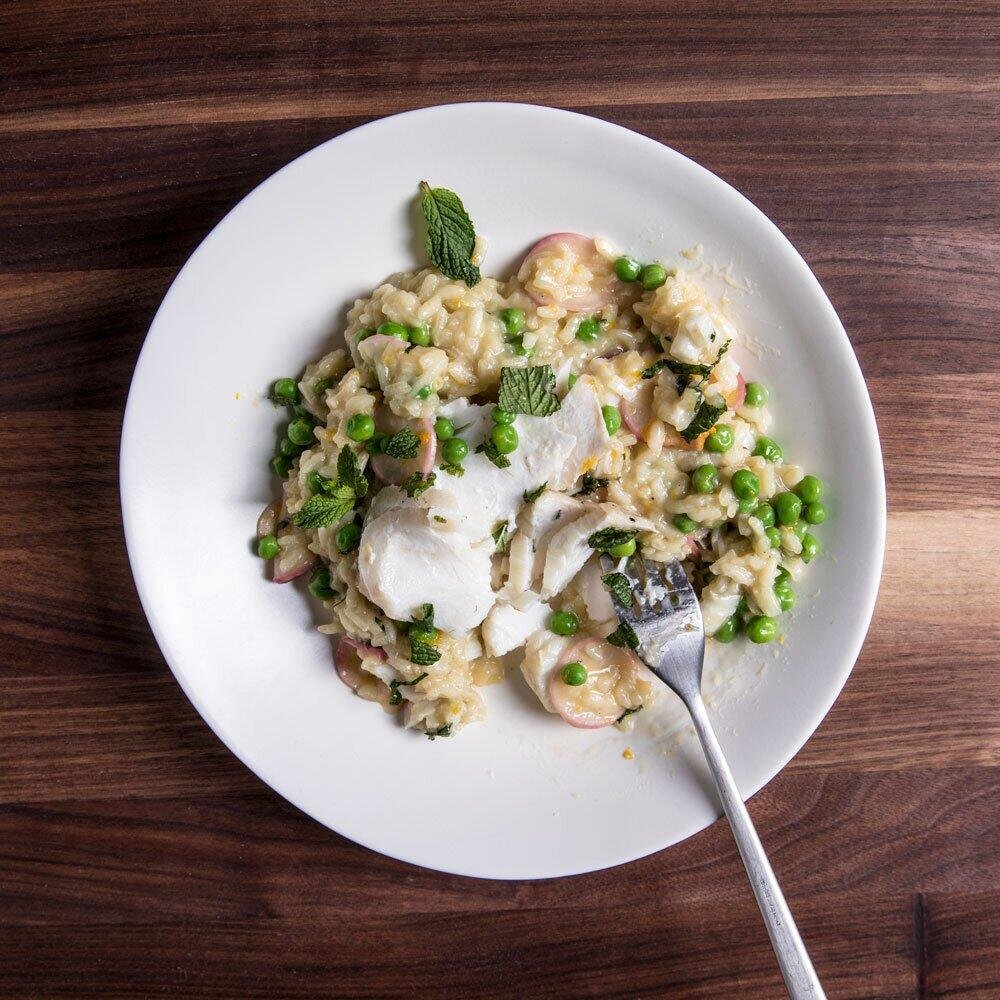 Ριζότο με πέρκα και πικάντικη μουστάρδα