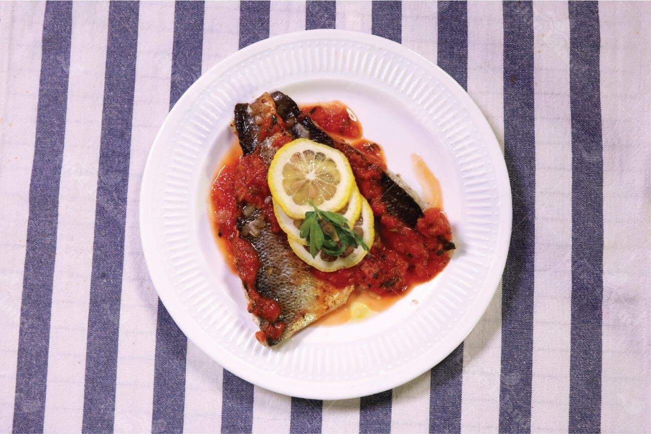 Προμηθευόμαστε τα φιλέτα μας ξεκοκαλισμένα από τη ψαραγορά μας Blue Island. Για το φοντύ ντομάτας Κόβου...