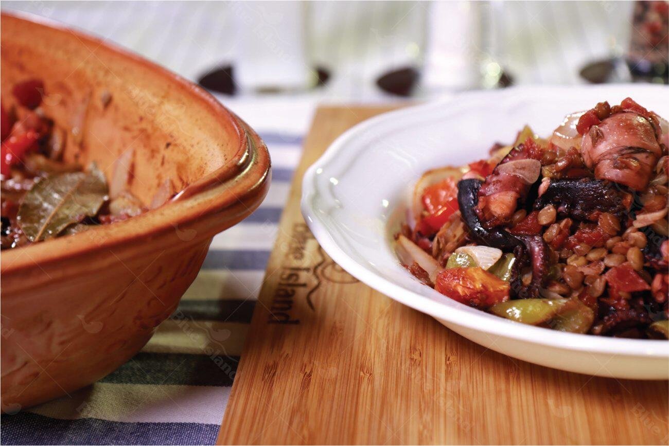 Χταπόδι στο φούρνο με κίτρινες φακές
