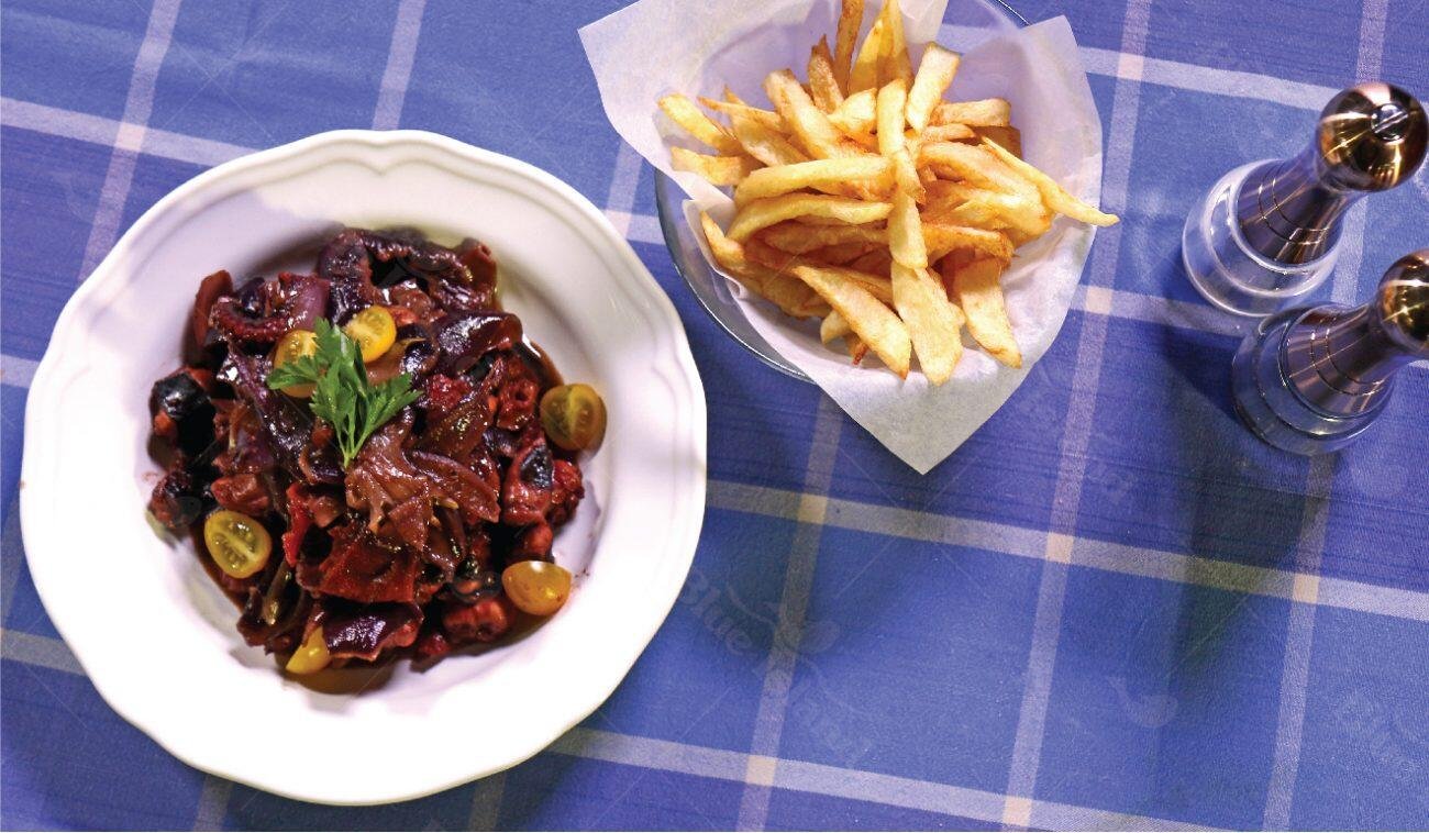 Χταπόδι με σάλτσα ντομάτας και ούζο