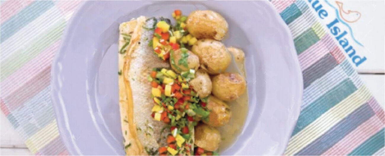 Προμηθευόμαστε το Λαβράκι μας καθαρισμένο από την ψαραγορά μας Blue Island. Διαλύουμε τον κύβο λαχανικ...
