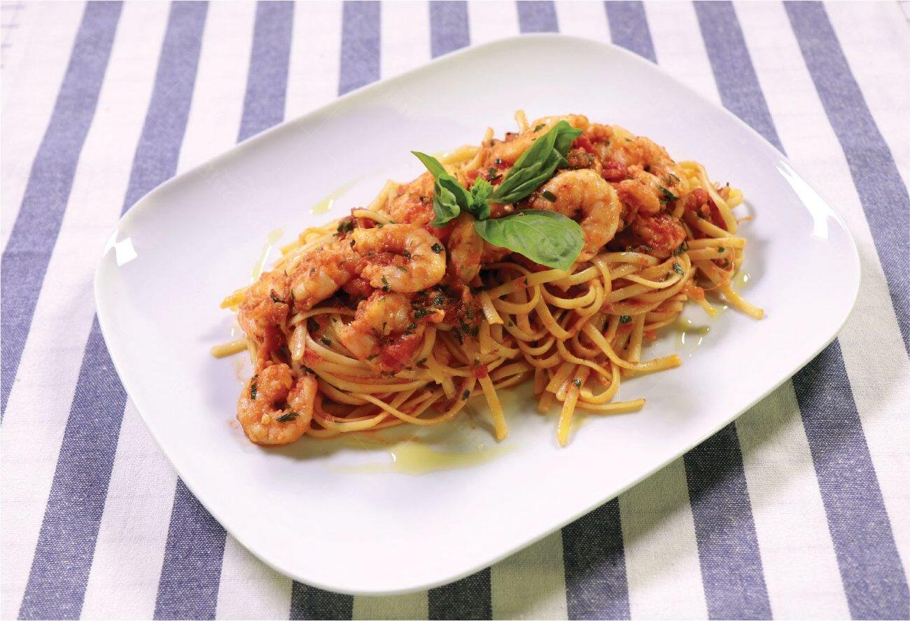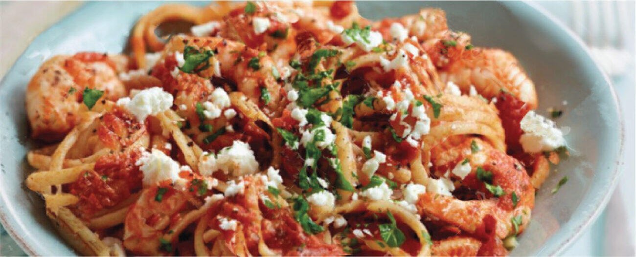 Βίδες με γαρίδες και κόκκινη σάλτσα