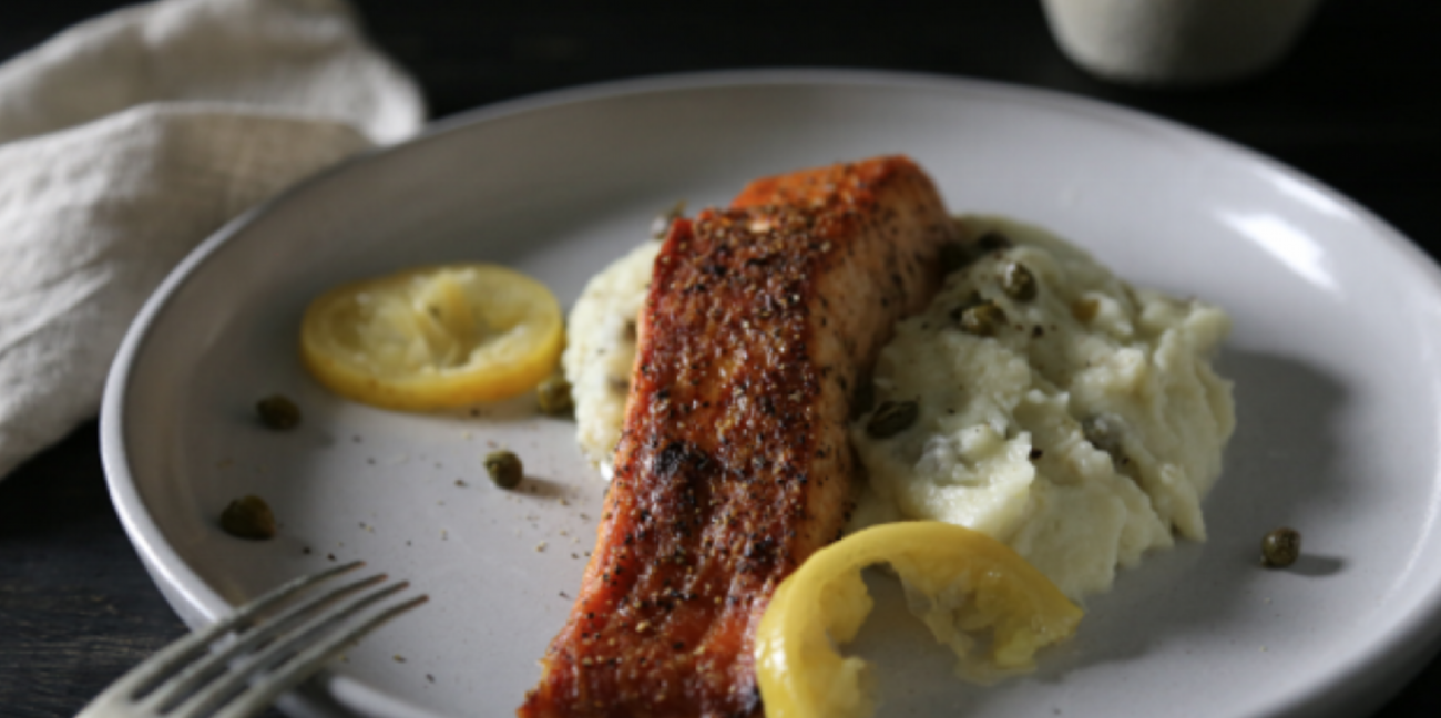 Φιλέτο ψαριού με πουρέ λεμονάτο
