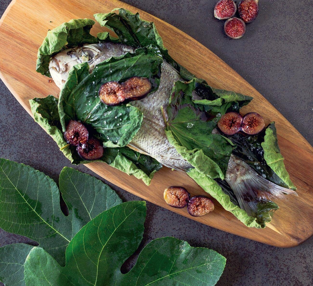 Φαγκρί στο φούρνο με φύλλα συκιάς