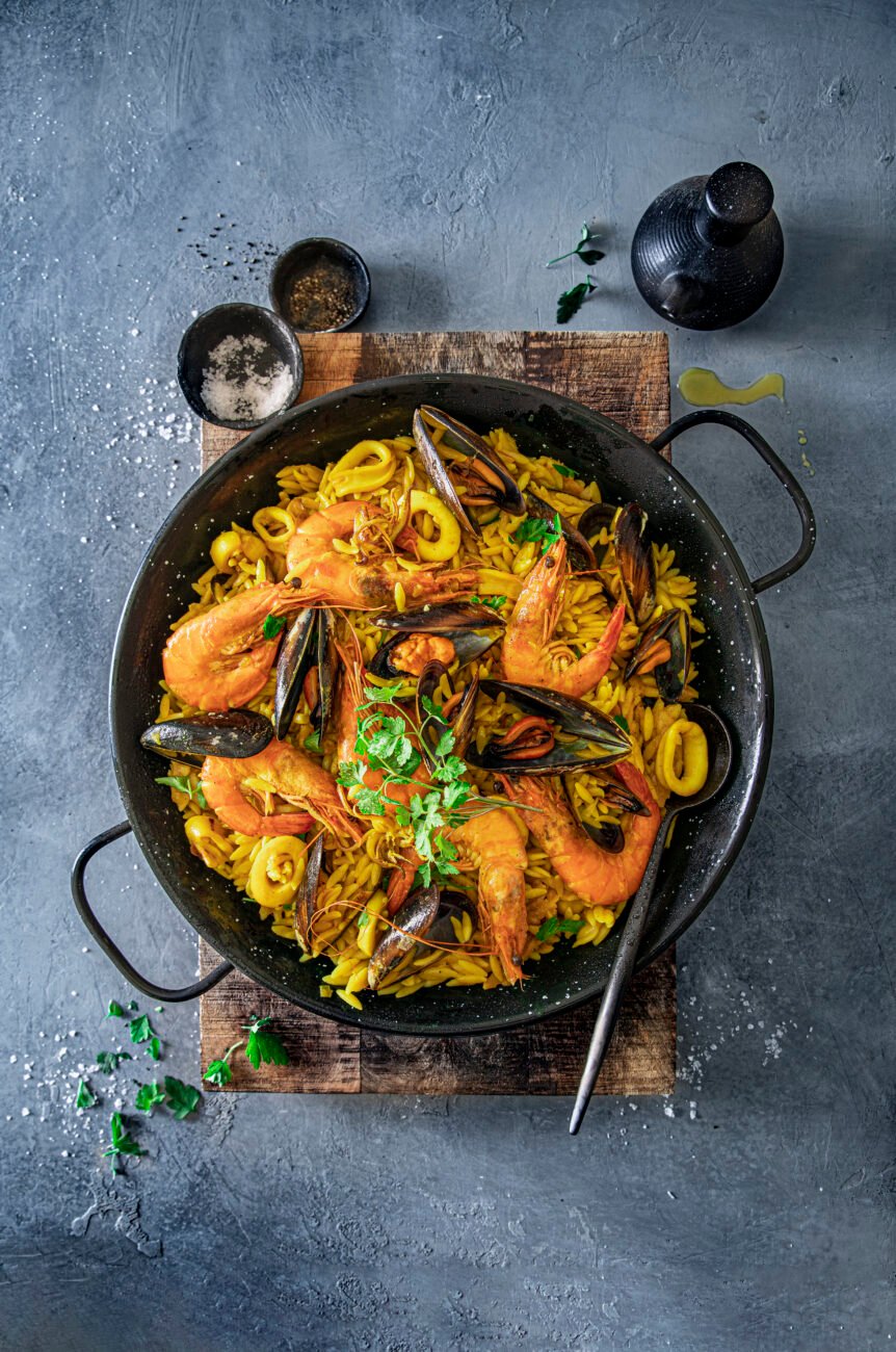 Κριθαράκι με κουρκουμά και θαλασσινά