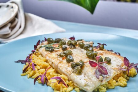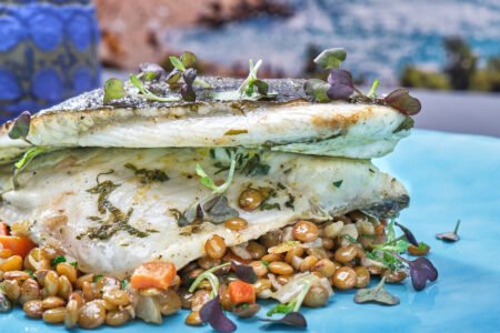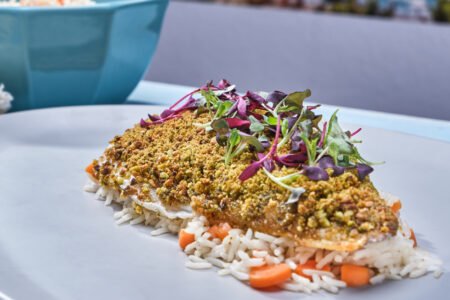 Λαβράκι φιλέτο με κρούστα από Φιστίκι Αιγίνης