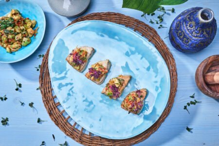 Φιλέτα Τσιπούρας με σαλάτα από φασόλια μαυρομάτικα και χούμους