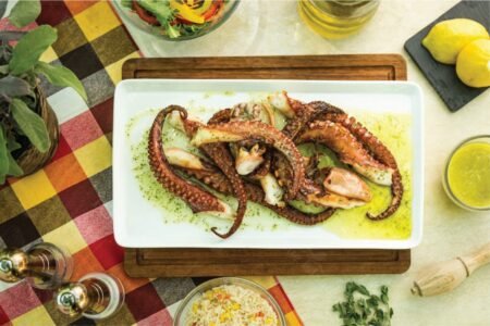 Χταπόδι στα κάρβουνα με αρωματικό λαδόξιδο