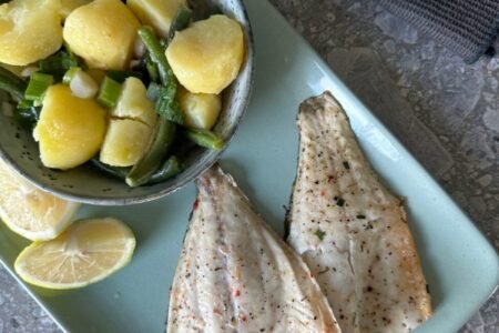 Κατσαρόλα Κυρίως-Πιάτο Μαριναρισμένα Φιλέτα Φούρνος Μαριναρισμένα φιλέτα Λαβράκι και Τσιπούρα στο φούρνο συνοδευμένα με σαλάτα από πατάτες και φασολάκι