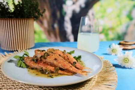 Κουτσομούρες ή Mπαρμπούνια με Σάλτσα Λεμονιού και Κουτρούβι