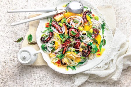 Σαλάτα χταπόδι με τσίλι και νούντλς