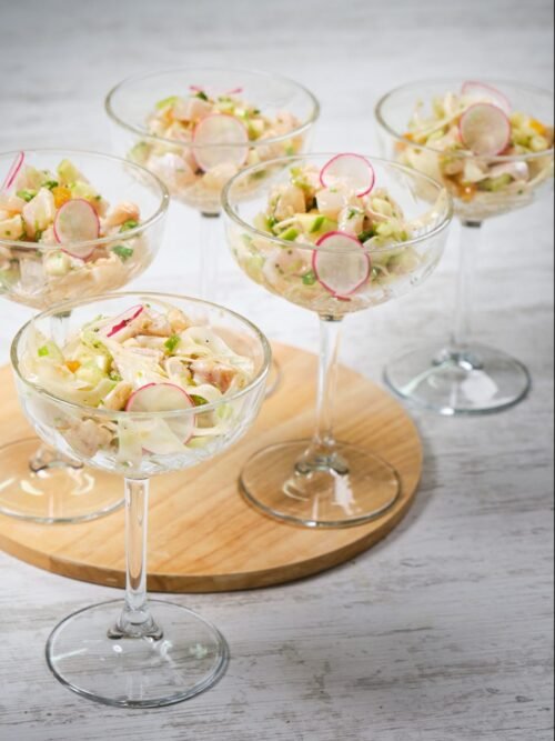 Λαβράκι Σεβίτσε σαλάτα με πράσινο μήλο και παστά χρυσόμηλo