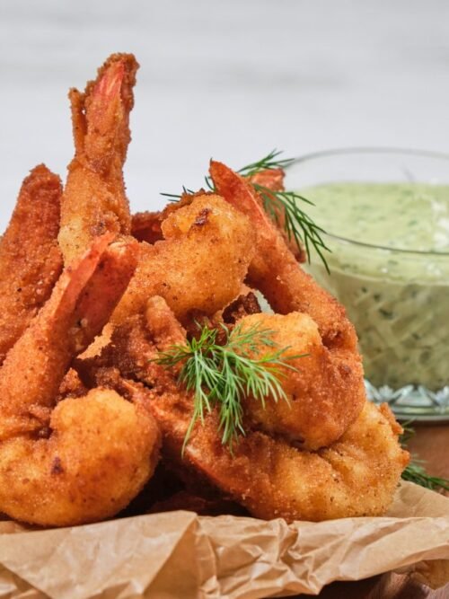 Τραγανές Γαρίδες σερβιρισμένες με σος Αϊολί