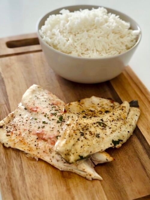 Μαριναρισμένα Φιλέτα Tσιπούρας και Λαβράκι Blue Island σερβιρισμένα με ρύζι ατμού στο Thermomix