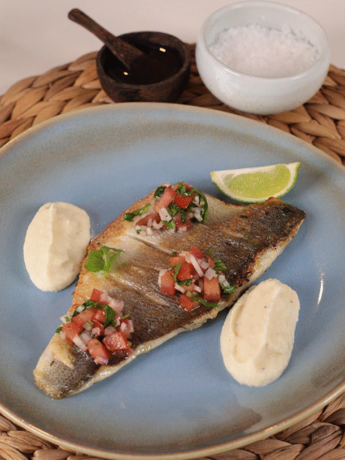 Μαριναρισμένο Λαβράκι με πουρέ σελινόριζας & pico de gallo