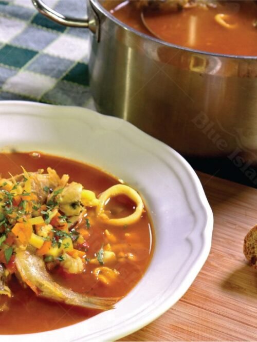 Προμηθευόμαστε τα θαλασσινά μας από τις Ψαραγορές Blue Island. Σε μια βαθιά κατσαρόλα ρίχνουμε το ελαι