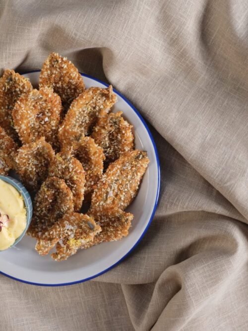 Γαύρος στο τηγάνι με τραγανή κρούστα σερβιρισμένος με σπιτική Μαγιονέζα