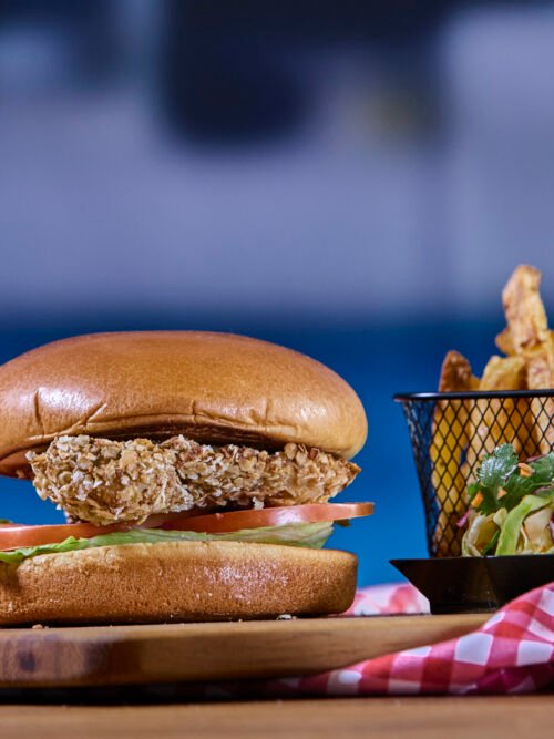 Τραγανό Μπιφτέκι Φαγκρί με Πατάτες Φούρνου και Ασιατική Σαλάτα