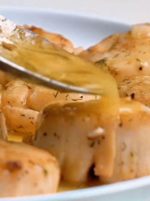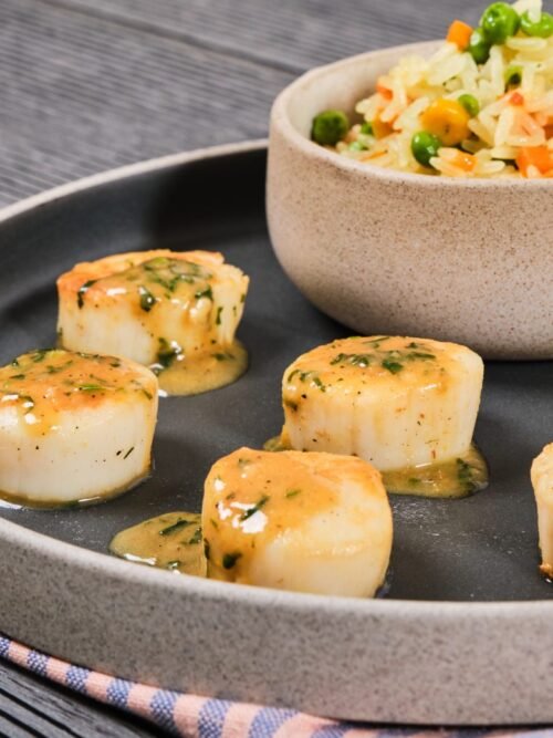 Χτένια στο Τηγάνι με Λεμόνι και Μαϊντανό σερβιρισμένα με Ρύζι Λαχανικών