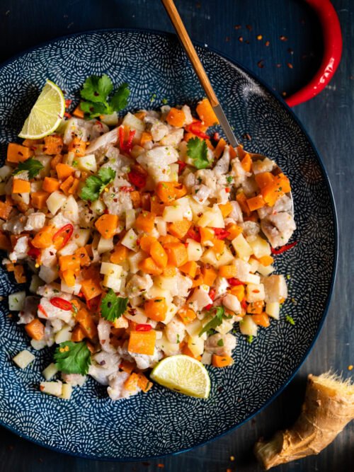 Προμηθευόμαστε τo Λαβράκι μας από τις ψαραγορές Blue Island. Ρίχνουμε τα υλικά της μαρινάδας σε ένα μπολ