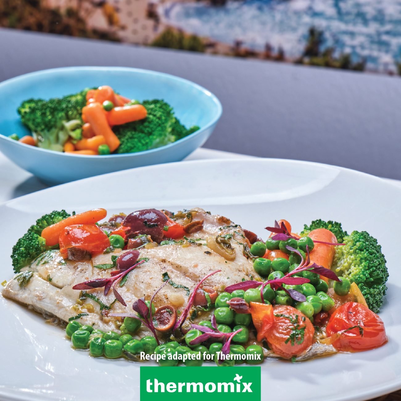 Φιλέτα Τσιπούρας με ντοματίνια, μαύρες ελιές και λαχανικά στον ατμό στο Thermomix