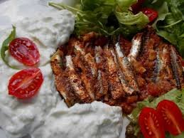 Γαύρος στο τηγάνι με σάλτσα ντομάτας και λευκό κρασί