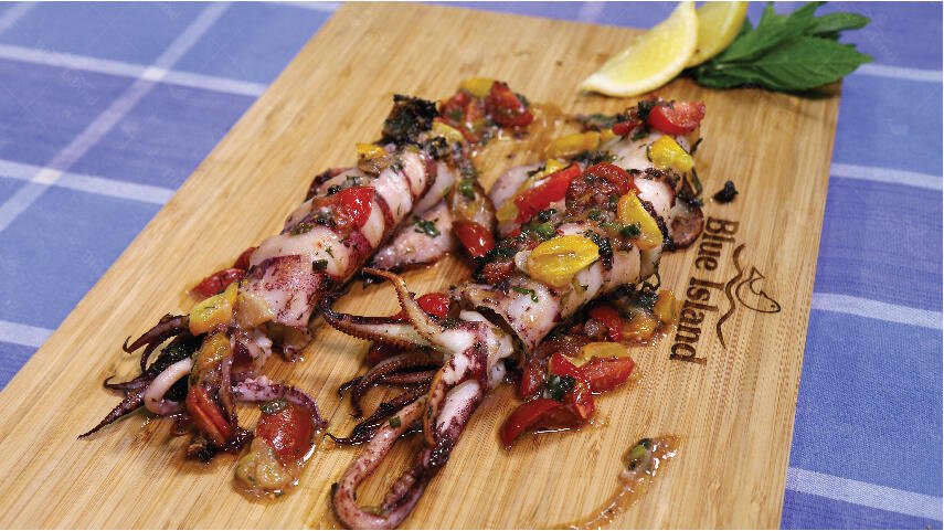 Προμηθευόμαστε τα καλαμάρια μας καθαρισμένα από την ψαραγορά μας Blue Island.