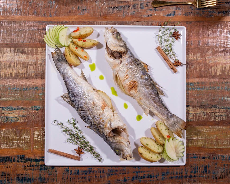 2 Λαβράκια καθαρισμένα από τις ψαραγορές Blue Island