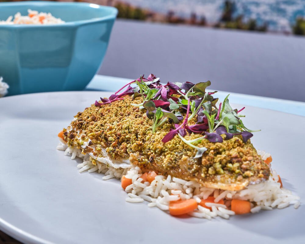 Λαβράκι φιλέτο με κρούστα από Φιστίκι Αιγίνης