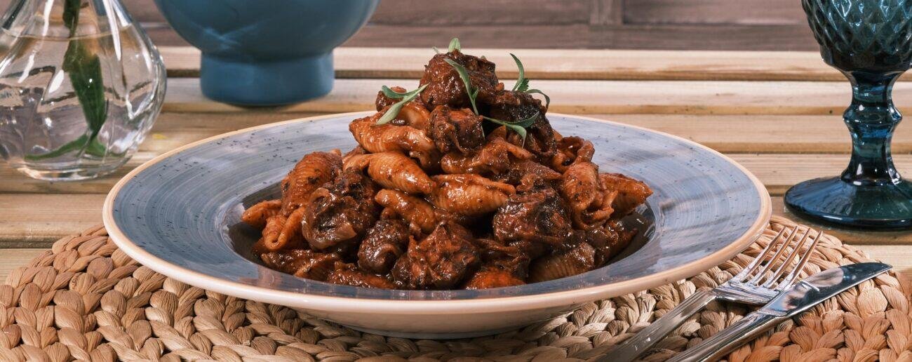 Μελένιο Χταπόδι με Κουμανταρία και Μακαρόνια Κοχύλια