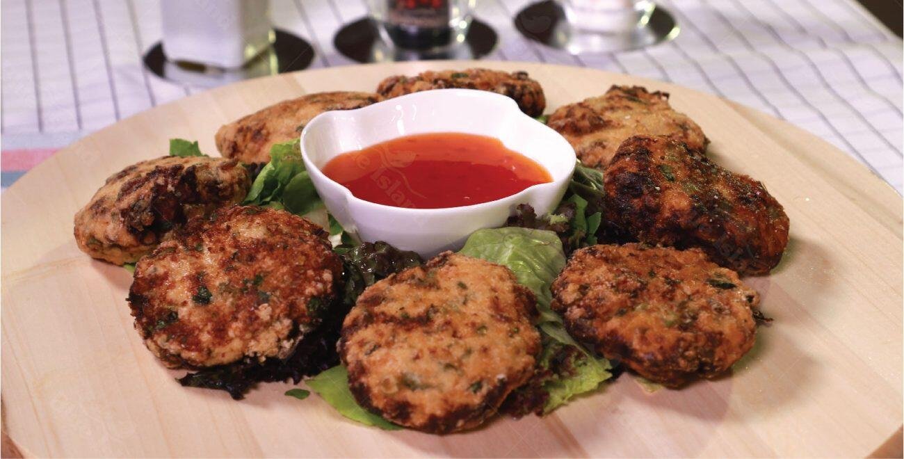 Βάζουμε το ψάρι μας στο μίξερ και το ανακατεύουμε καλά. Στην συνέχεια προσθέτουμε στο μίξερ το αυγό, τον κόλιανδρο, και την γλυκιά σάλτσα τσίλι ανακατεύοντας όλα τα συστατικά μαζί.