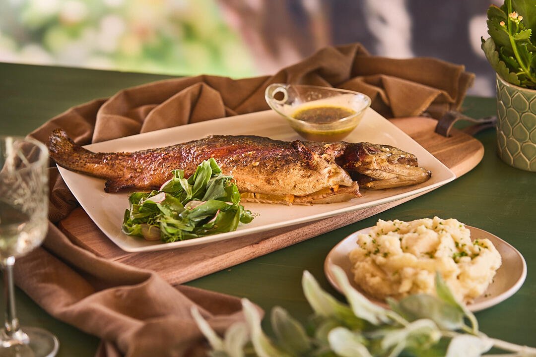 Πέστροφα με Σάλτσα Πορτοκαλιού και Πουρέ Πατάτας