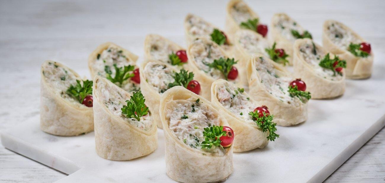 Ανακατεύουμε και διορθώνουμε την γεύση με αλάτι και πιπέρι αν χρειαστεί. Αλείφουμε τις τορτίγιες με λίγη μαγιονέζα, βάζουμε το μείγμα και τυλίγουμε.