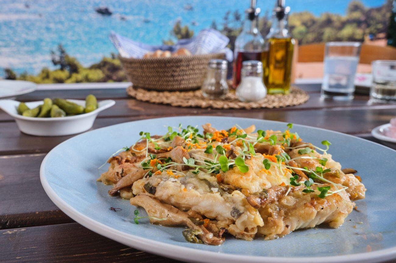 Φιλετάκια Πεσκανδρίτσας στο τηγάνι με Μανιτάρια, Κουτρούβι και Λεμόνι