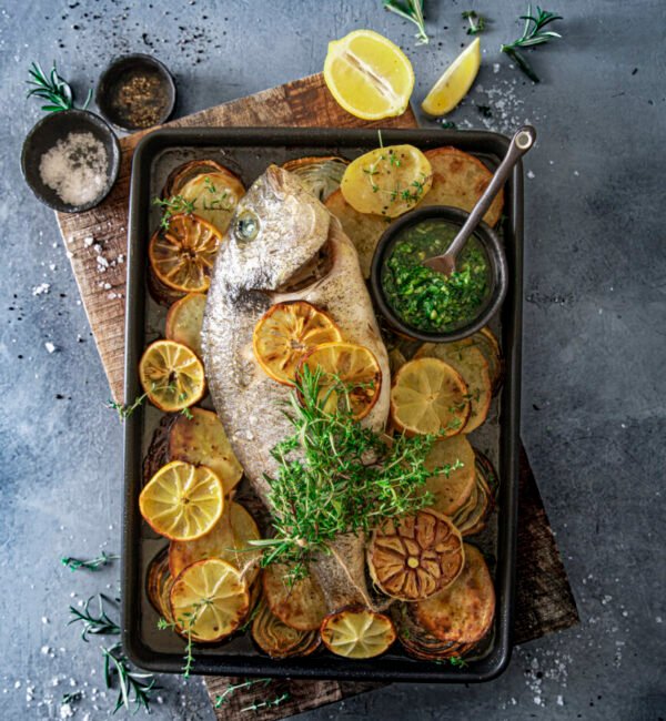 Lemon Sea Bream with Garlic and Parsley Sauce