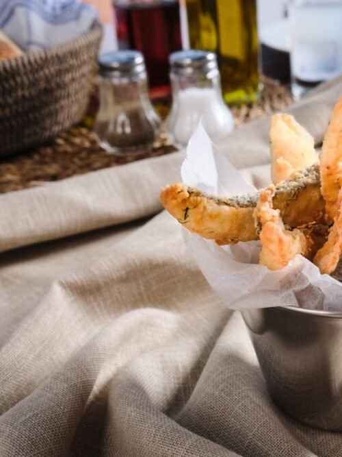 Purchase cleaned fresh Sea Bass fillets from one of the Blue Island Fish Markets Get all the ingredients ready: 1. Cut the Sea Bass into strips 2. Marinate the fi
