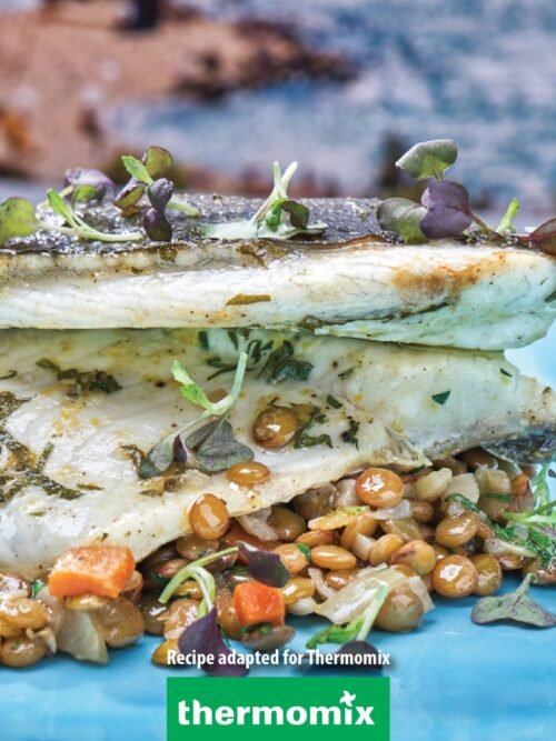 Instructions: Seam bream fillets -Preparation Lentils Sea bream fillets Recipe from chef Noel Christos Bassil *Useful items: bowl, baking tray, baking paper, deep dish
