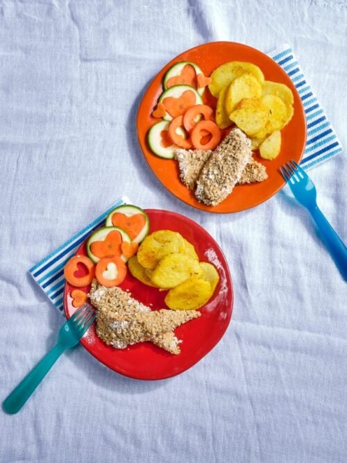 Crispy Red Porgy Burger with Oven-Baked Potatoes and Asian Salad