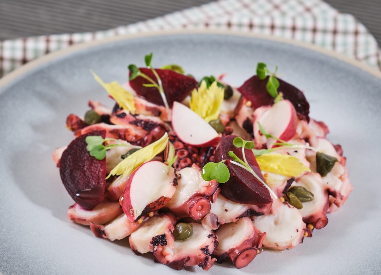 Pickled Octopus Salad with Beetroot, Radishes and Capers